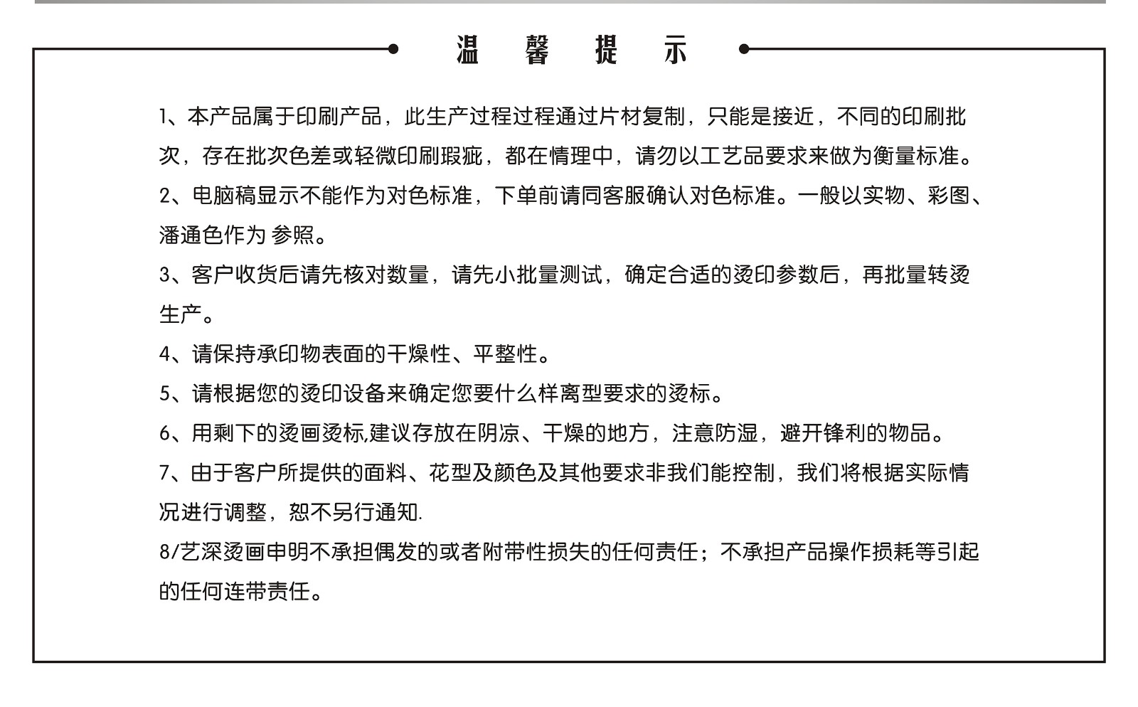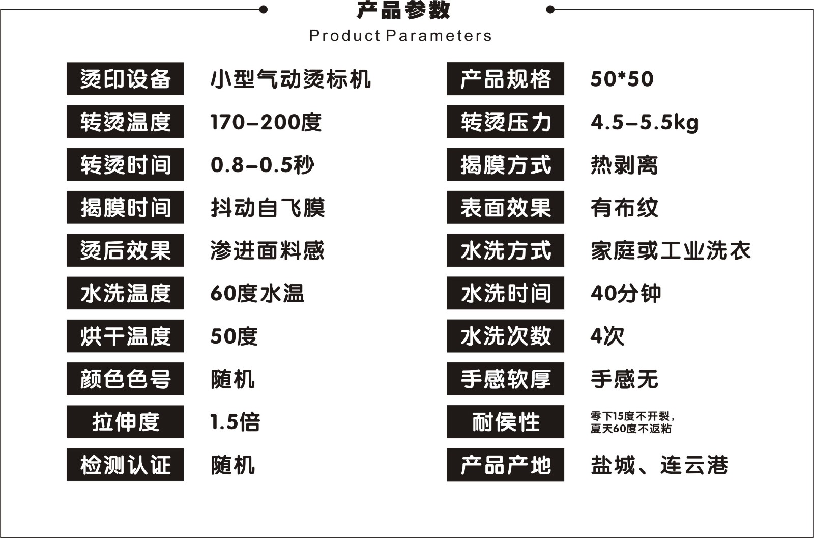 | 熱轉(zhuǎn)印條件 | 溫度:130-160度,時(shí)間:6-12秒/次,壓力:0.24 kgf/cm^2以上 |